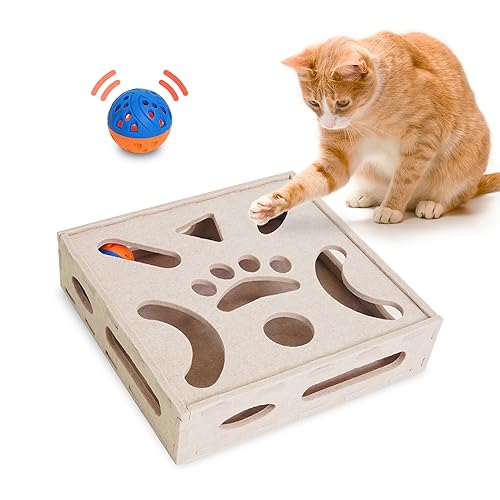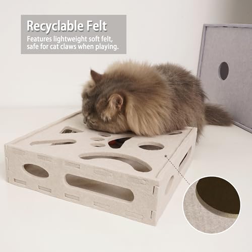 ORIGINAL PUZZLE TOY: Features recyclable felt and hollow puzzle with jingle ball for indoor cats. The puzzle box stimulates kitty natural instincts, keep cat active and mentally engaged.